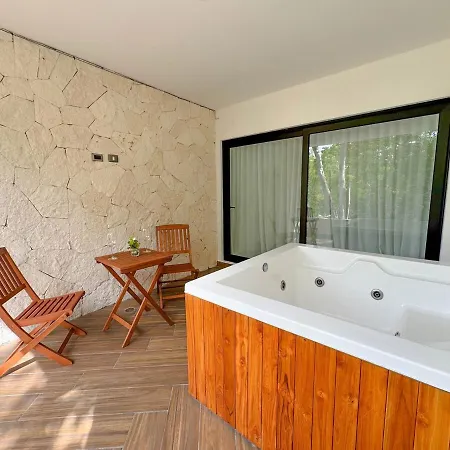 Disfruta de tus vacaciones en Tulum en el Incredible Studio With Jacuzzi Naia C19 Tulum. Ideal para quienes buscan una experiencia auténtica, está situado a poco más de 25 minutos a pie de la galería de arte MiNiAtUrE y a 2 km del Pirámide del Pensamiento Positivo. Este apartamento de 84 m² cuenta con una piscina exterior durante todo el año y una terraza para comodidad de los huéspedes.